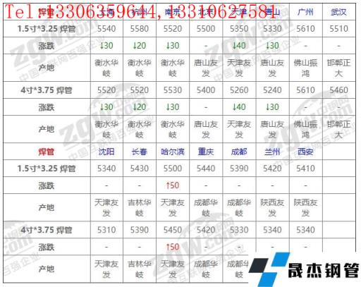 全國15個(gè)主要市場1.5寸*3.25 焊管平均價(jià)格5458元/噸,較上個(gè)交易日下調(diào)7元/噸。