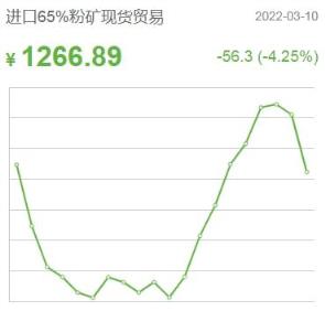 3月11日,根據(jù)今日鐵礦的消息來看,本周進(jìn)口鐵礦石價格整體下跌,而國產(chǎn)鐵礦價格走勢良好。分類別來看,進(jìn)口65%粉礦現(xiàn)貨貿(mào)易價格1266.89元/噸,較前一個交易日下跌56.3,跌幅4.25%;進(jìn)口65%粉礦到岸價格186.69美元/噸,較前一個交易日下跌2.26,跌幅1.2%;國產(chǎn)65鐵精礦漲0.91收于1057.58元/噸,漲幅0.09%;國產(chǎn)62%鐵精礦漲0.75收于944.37元/噸,漲幅0.08%。