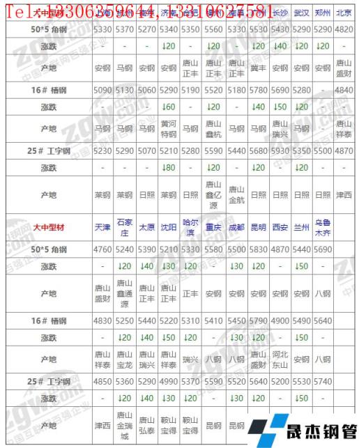 全國22個主要市場16# 槽鋼平均價格5308元/噸,較上個交易日下調19元/噸。