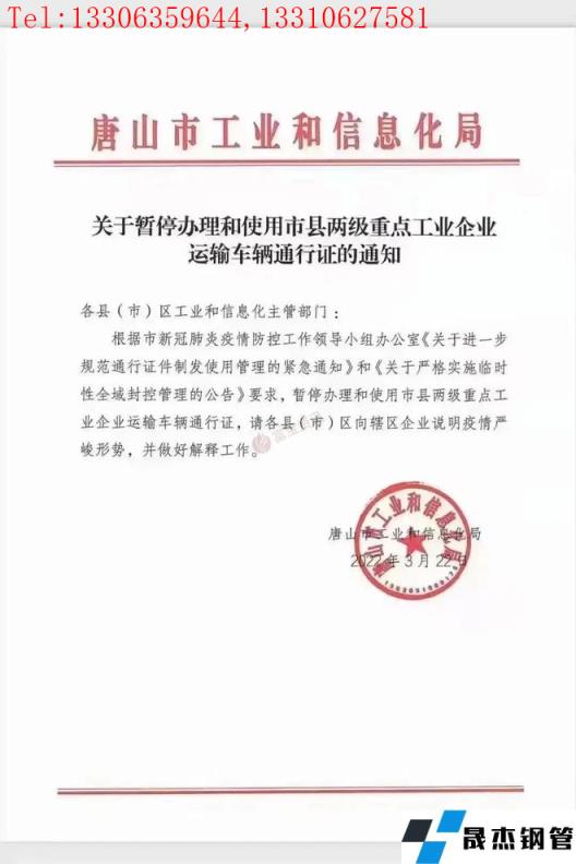針對現(xiàn)階段唐山市轄區(qū)26家長流程鋼企調(diào)研了解如下:截止目前,唐山長流程鋼企在生產(chǎn)方面目前面臨最嚴重的問題仍然是由于交通管制帶來的原料進廠、成品材外輸。關于21日發(fā)布了重點工業(yè)企業(yè)辦理運輸車輛通行證的通知,據(jù)調(diào)研了解,目前長流程鋼企在文件下發(fā)后均積極申請,但相關部門對于審批相對謹慎,所以整體并未真正落地,僅個別精密管廠家少數(shù)原料運輸車輛得以批復,但也不能完全緩解整體原料緊張的局面。