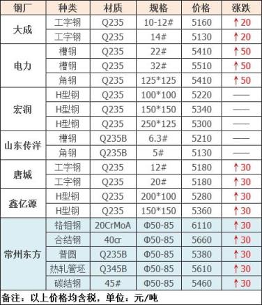 今日型材、特鋼共7家精密管廠家調價發布,其中: